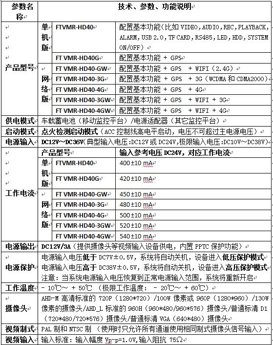 Hisilicon高性能CPU、H.264视频压缩技术和移动互联网技术而研制开发的四路全AHD (720P/960P 模拟高清), 全实时(PAL 1-100 FPS;NTSC 1-120 FPS) 高清联网型移动监控录像设备。FT VMR-HD40功能强大,兼容性好,操作界面简洁明快,外部接口十分丰富。客户可以根据实际需要,自由选择GPS功能、WIFI功能、3G/4G功能等。FT VMR-HD40可以直接接入凡唐公司专门研发的VNS网络云平台(Vehicle Remote Monitoring & Managing Network System), 从而实现移动设备与监控管理中心的远程联网。强大的VNS网络云平台,使车辆的GPS定位,轨迹跟踪,视频传送,语音对讲,区域限制、报警管理变得易如反掌,使车辆管理方式进入以云计算技术为基础的无线互联网时代。